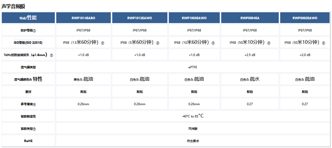 大家好,今天要跟大家分享的是戈埃爾聲學音頻膜的性能參數。